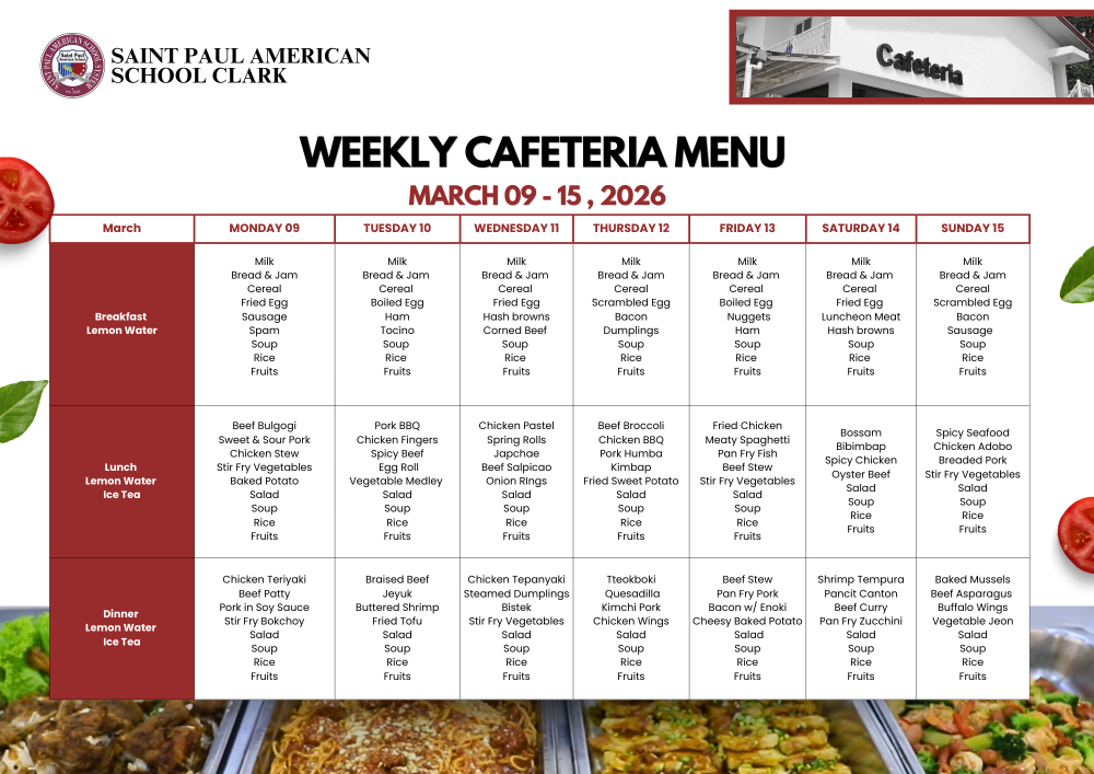 Cafeteria Menu March 9 - 15, 2026