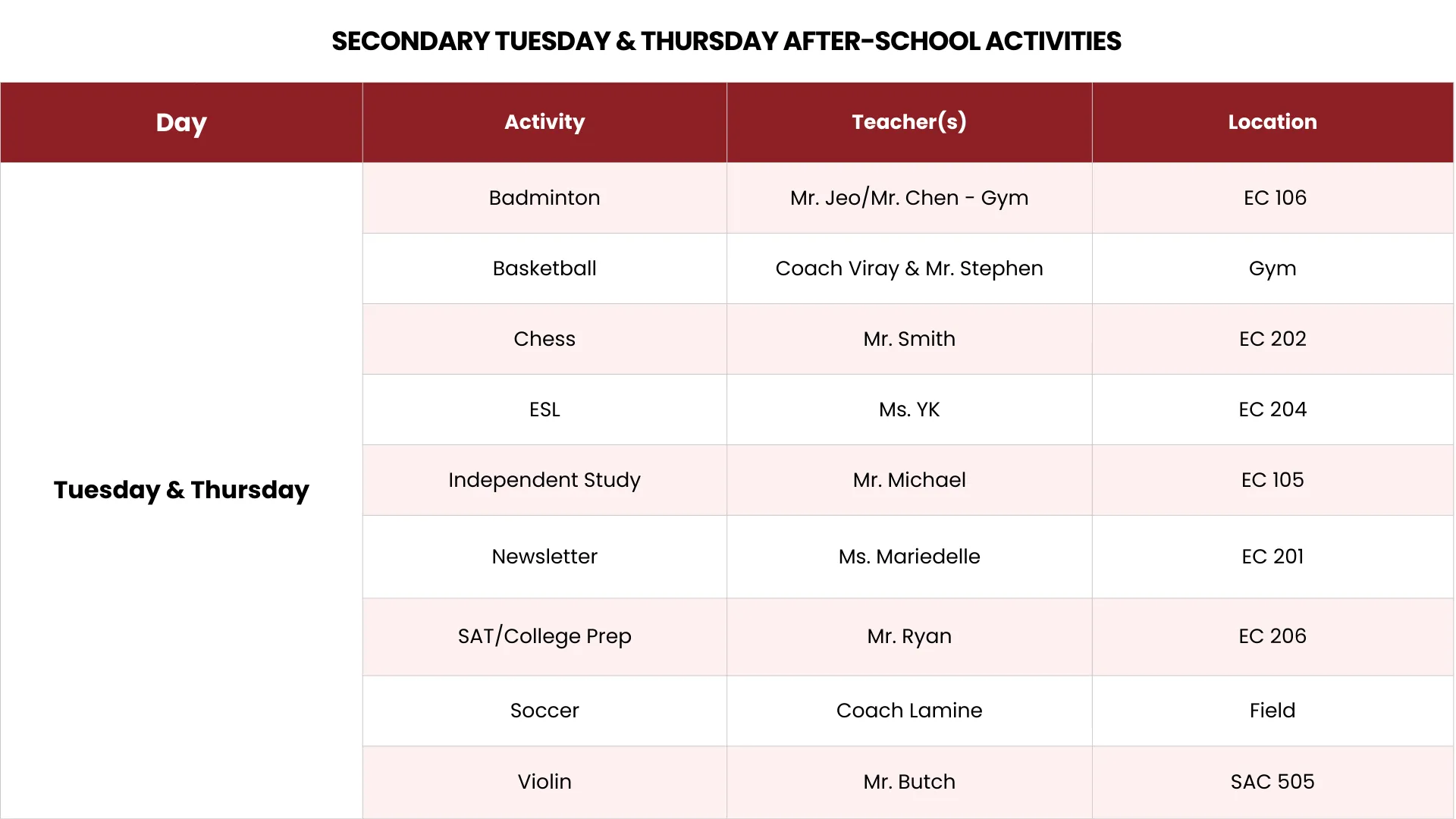 The Elementary Sports Club gives students the chance to learn and enjoy a variety of sports in a fun and inclusive environment. The program focuses on teamwork, sportsmanship, coordination, and fundamental motor skills. Students will rotate through popular sports like basketball, soccer, volleyball, and relay games-while developing fitness, discipline, and a love for healthy competition.